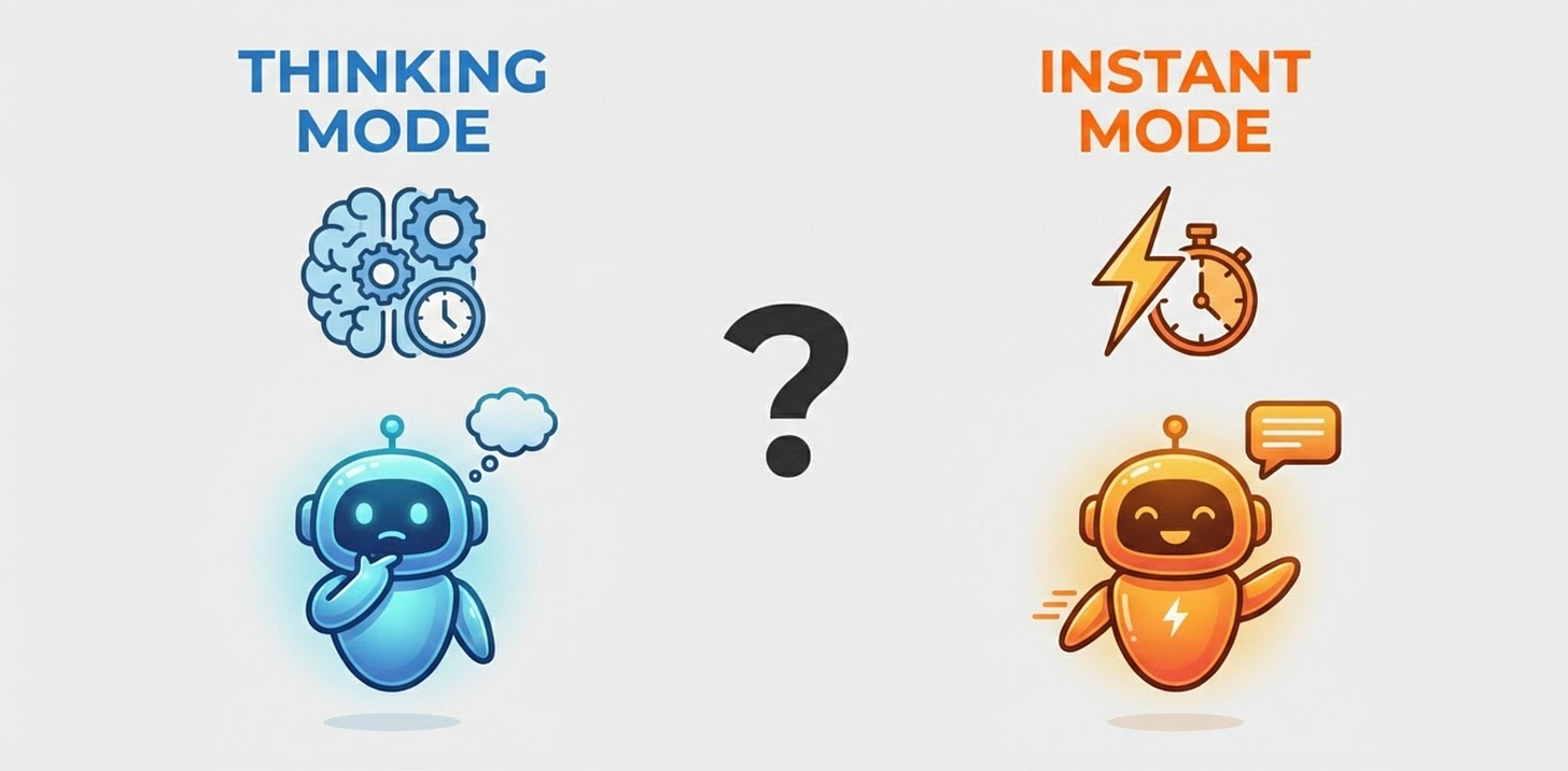 The problem is that many people treat every AI interaction the same way. They either default to speed all the time—or they overuse “deep thinking” and end up frustrated waiting for answers that didn’t need that level of rigor.